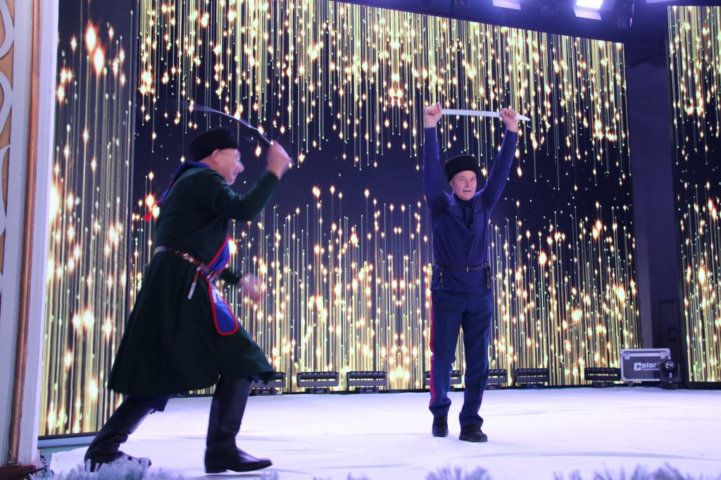 На концерте выступили этнокультурные центры города. Гостями праздника стали казаки из г.Алматы Союза казаков Семиречья,они показали искусство фланкировки казачьей шашкой.