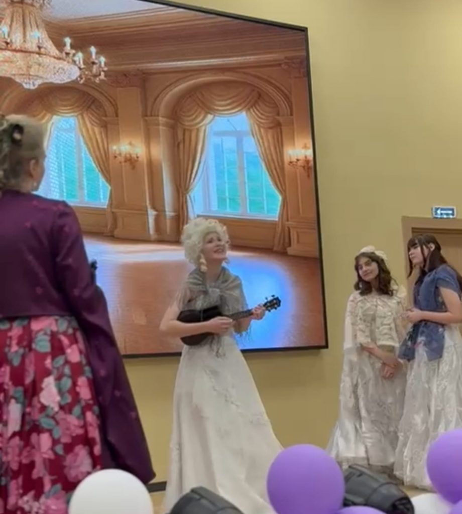 Была выделена тема любви поэта к обычному развлечению тех лет, балам, где он впервые увидал будущую жену Наталью Гончарову. А какие песни и танцы тогда были популярны — представила театральная студия под руководством Морозовой С.А.: танец «Минует», романс «Нет, не любил он»…