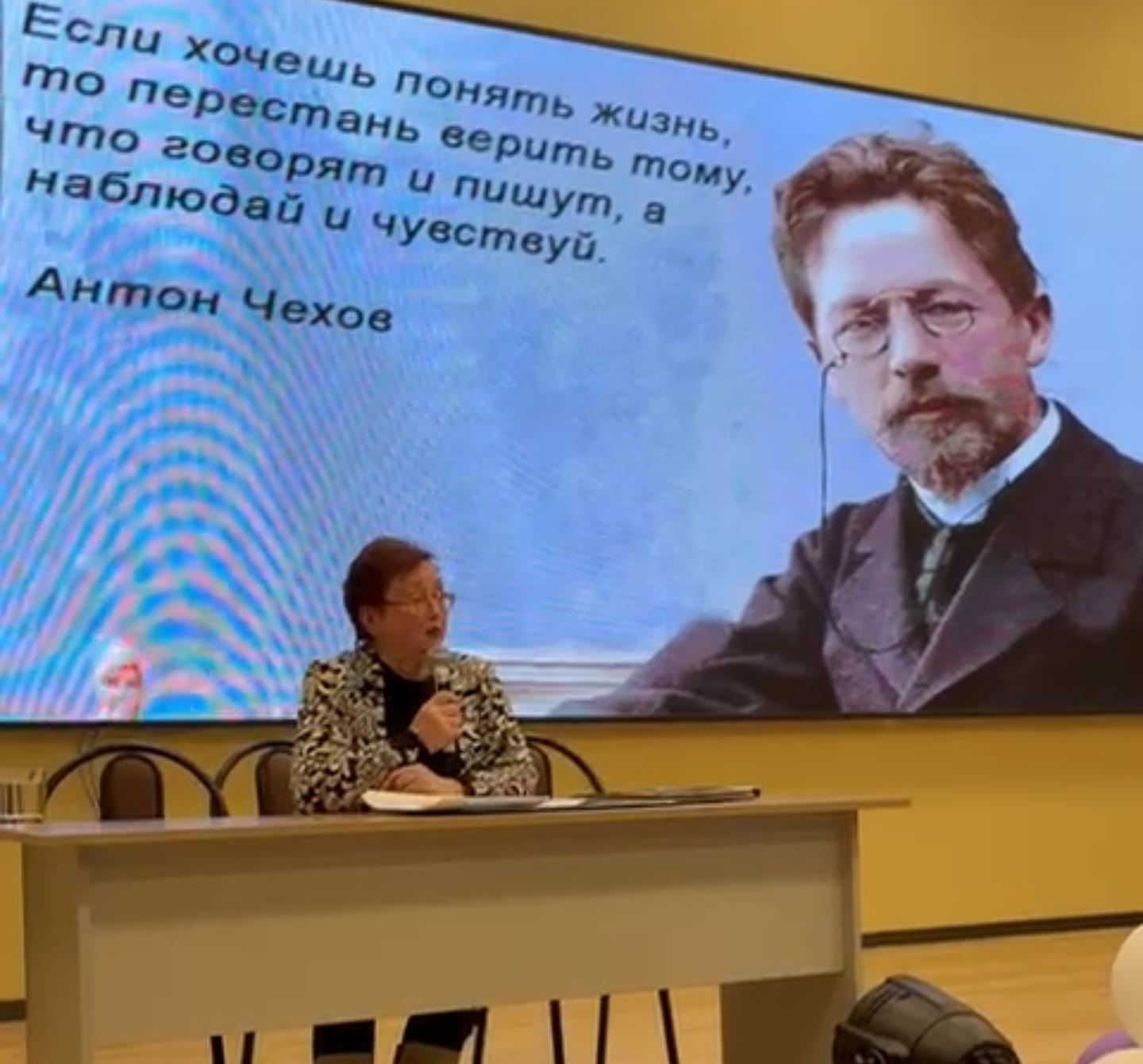 В заключение на большом экране была представлена подборка известных афоризмов А.П.Чехова и подчёркнуто их значение и для нашего времени, для нынешнего поколения.
