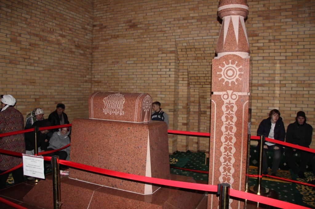 Представлен в экспозиции и ковёр, это не просто ковёр. Перед смертью Машхур Жусуп говорил, что его тело не подвергнется тлению, даже если его не предадут земле. После его кончины, в соответствии с этим предсказанием, тело не было захоронено, а помещено в нижнее помещение мавзолея. При выносе из дома его завернули именно в этот ковёр. Потомки бережно хранили его до наших дней…