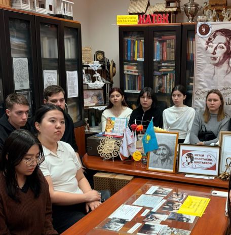 31 марта студенты специальности «Русский язык и литература» высшего колледжа имени Мусахана Канапьянова вместе со своими педагогами Кунсулу Петровной Елубаевой и Ильёй Олеговичем Приходченко посетили музей Анастасии Цветаевой Славянского центра.